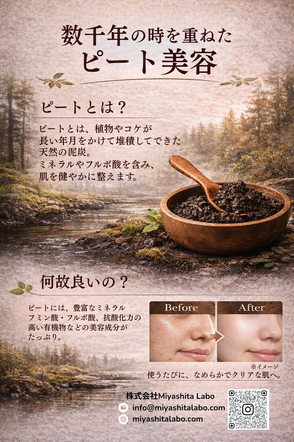 毛穴と皮脂の汚れをすっきり落とし、絹のように柔らかく健康なお肌に導くピート泥パック